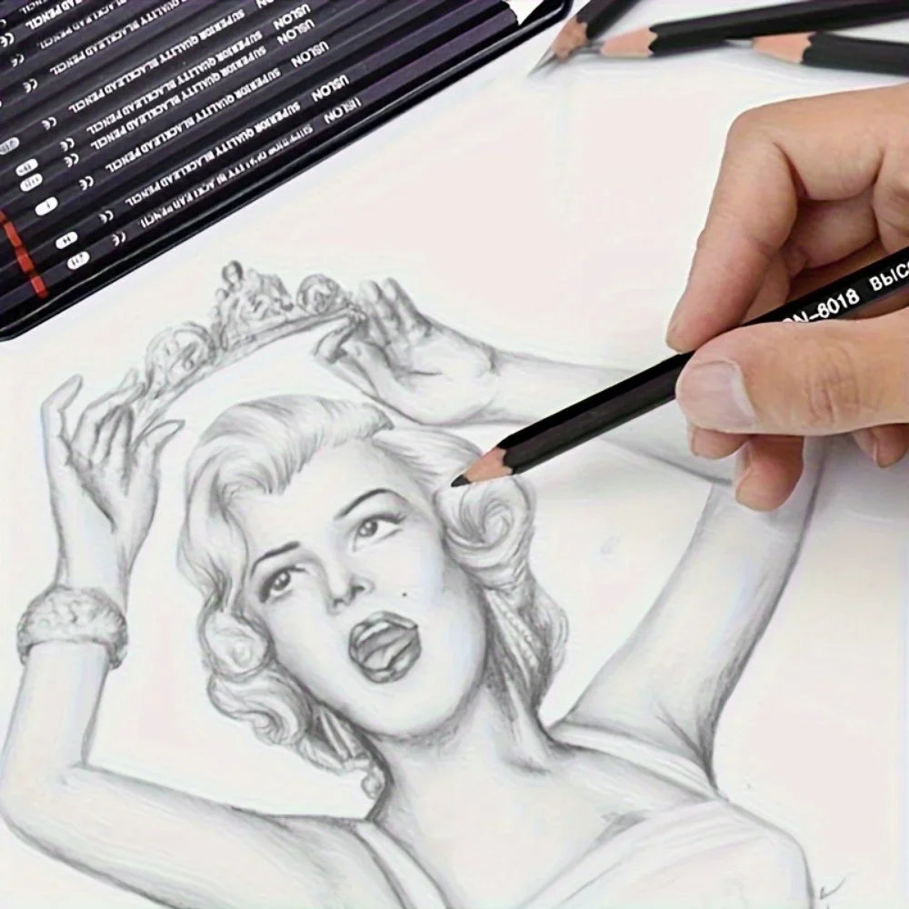 12Pcs Professional Drawing Sketching Pencil Set 2H-8B Graphite Shading Sketch Art Pencils for Beginners Pro Artists Stationery