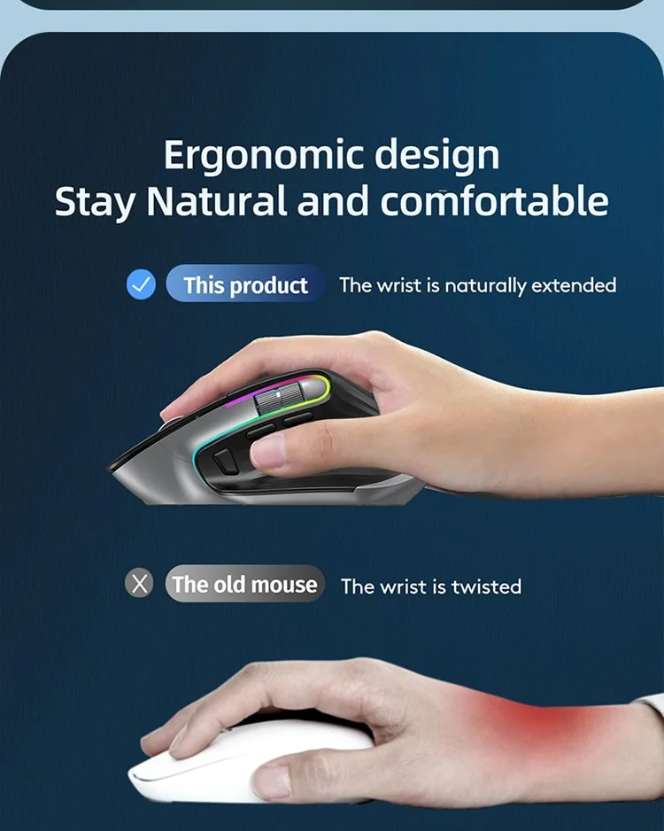Wireless Optical Mouse for Right-Handed Gamers Portable USB BT 5.0 2.4G Interface Multi-Device Compatibility Vertical Stock!
